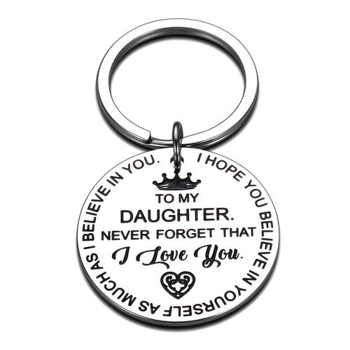to My Daughter Keychain Gifts from Mom Dad Birthday Christmas Gift for Stepdaughter Daughter in Law Girls Kids from Father Mother in Law Graduation Present for Her Teen Never Forget I Love You…