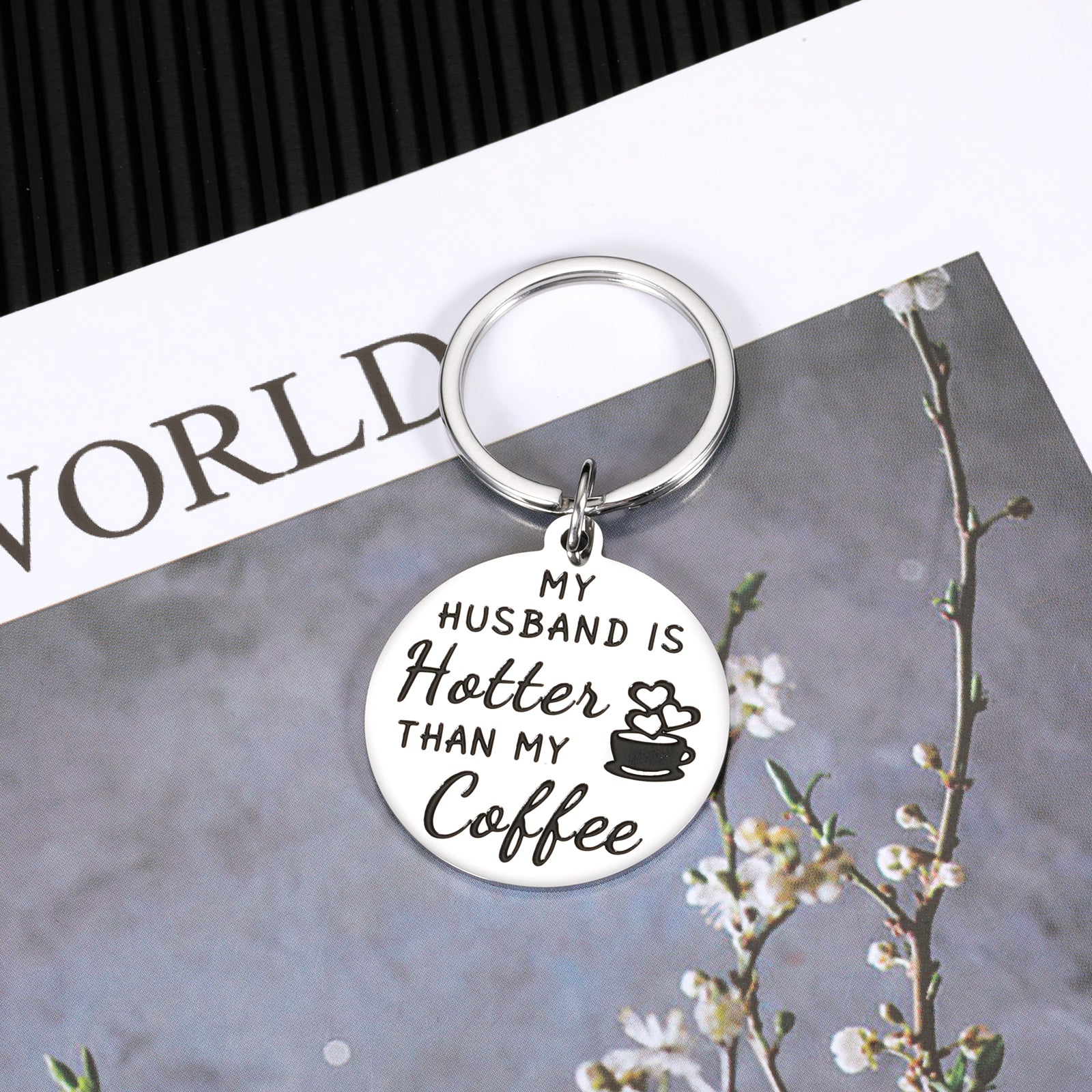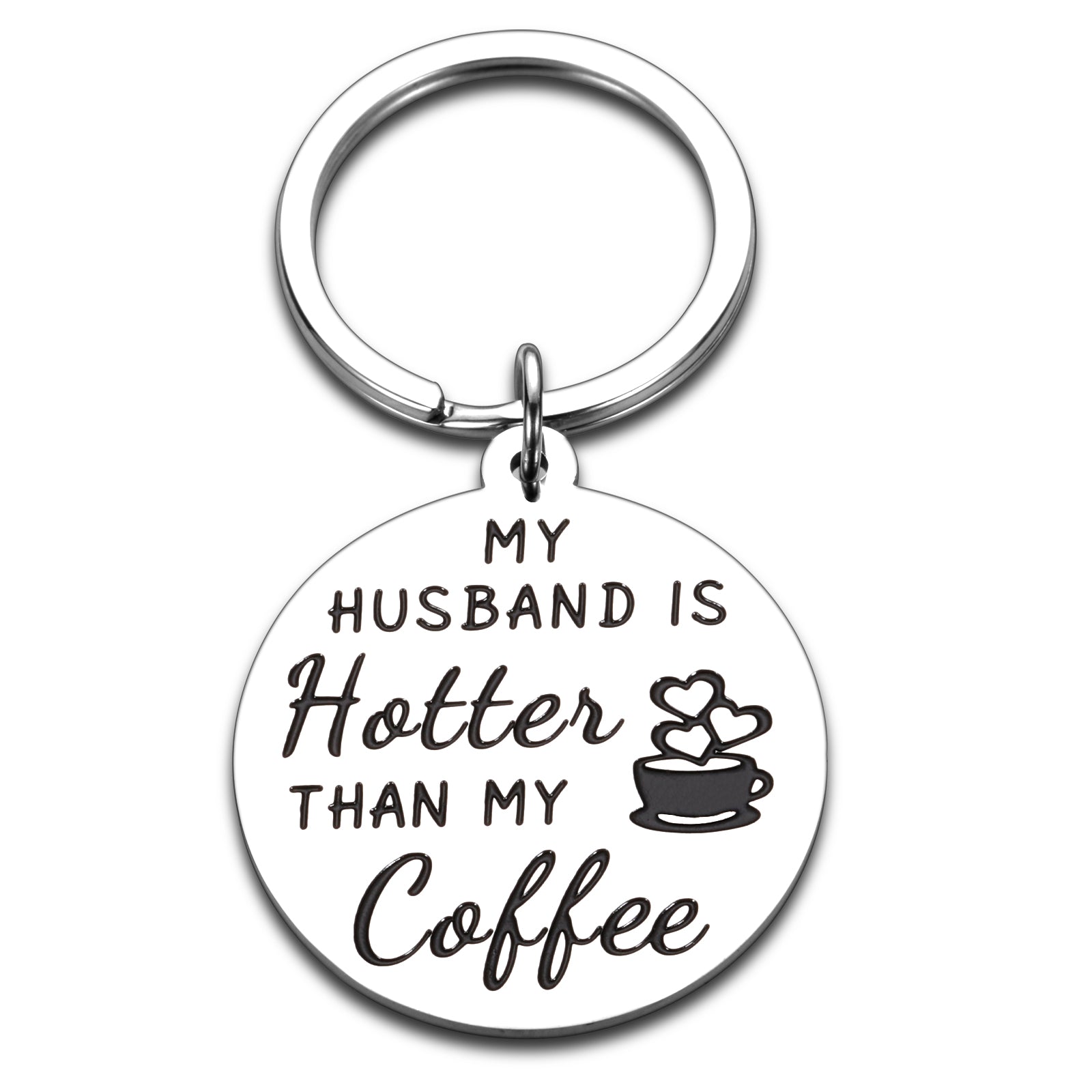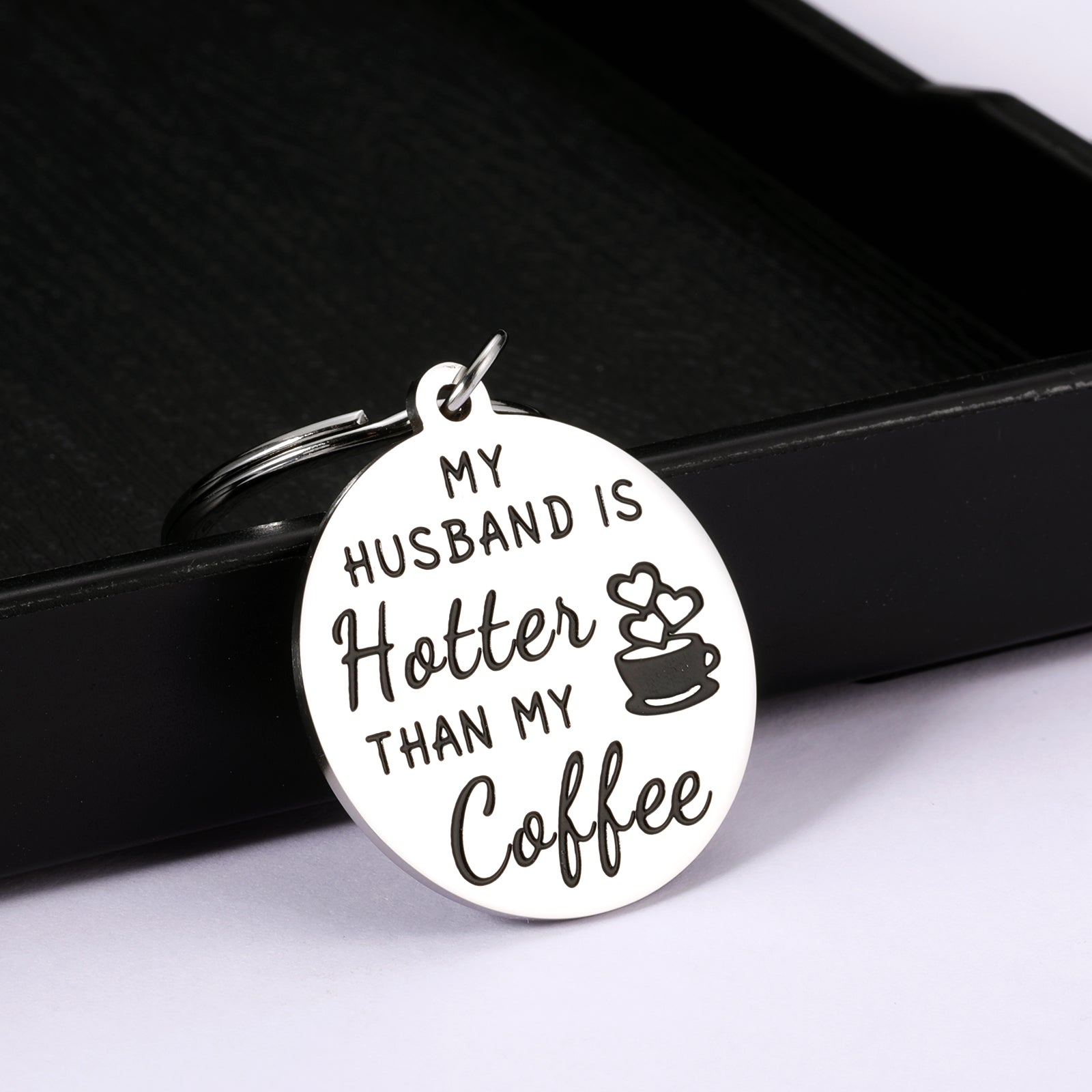 - 【Gift for My Husband from Wife】Cute gifts for husband from wifey. The small key chain engrave with humor quote :”My husband is hotter than my coffee.” This is the wonderful gifts idea for men husband gentleman boyfriend finance bridegroom lover companion spouse partner or better half in your life, he will be always with a happy smile whenever he see this key ring.