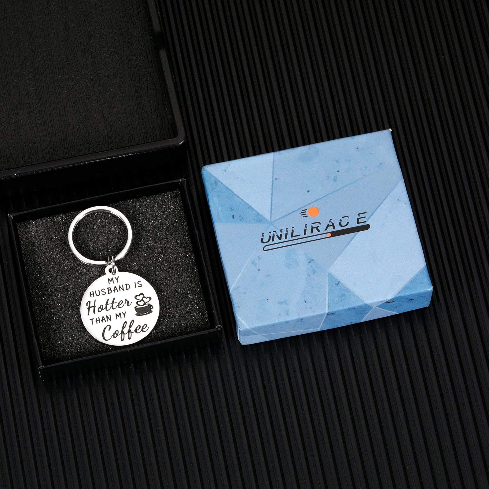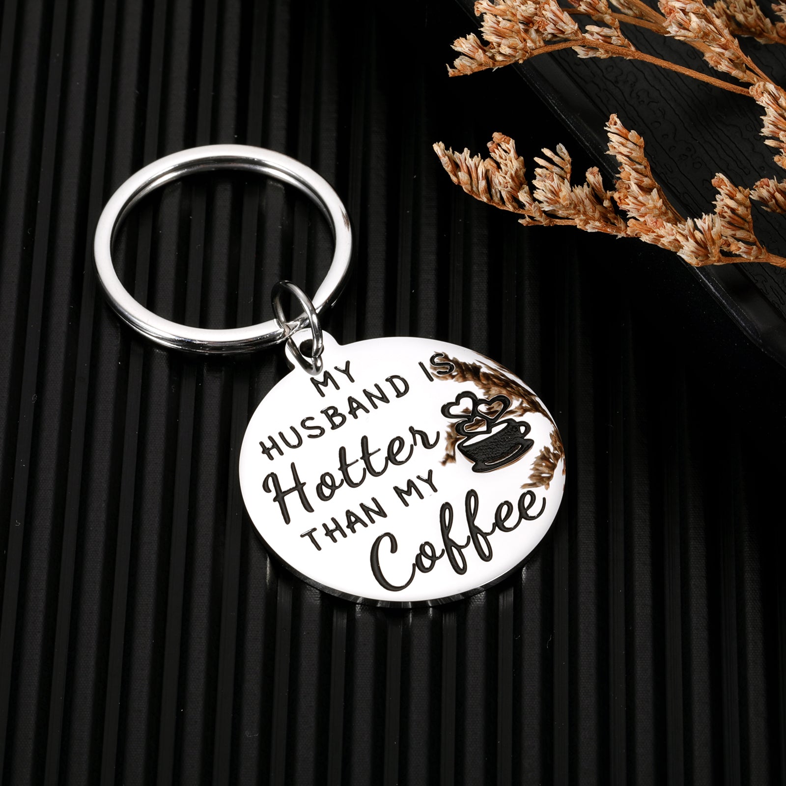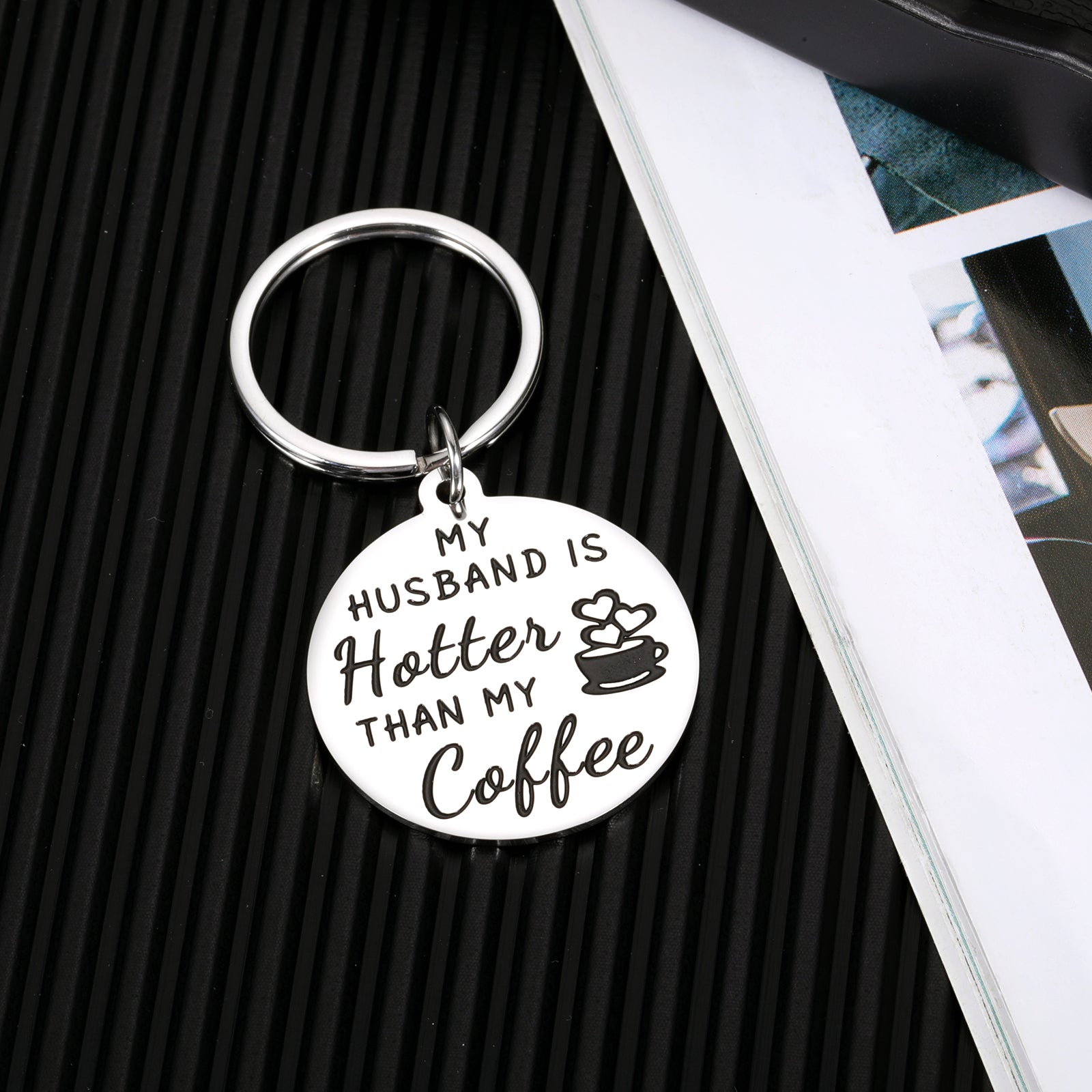 - 【Gift for My Husband from Wife】Cute gifts for husband from wifey. The small key chain engrave with humor quote :”My husband is hotter than my coffee.” This is the wonderful gifts idea for men husband gentleman boyfriend finance bridegroom lover companion spouse partner or better half in your life, he will be always with a happy smile whenever he see this key ring.