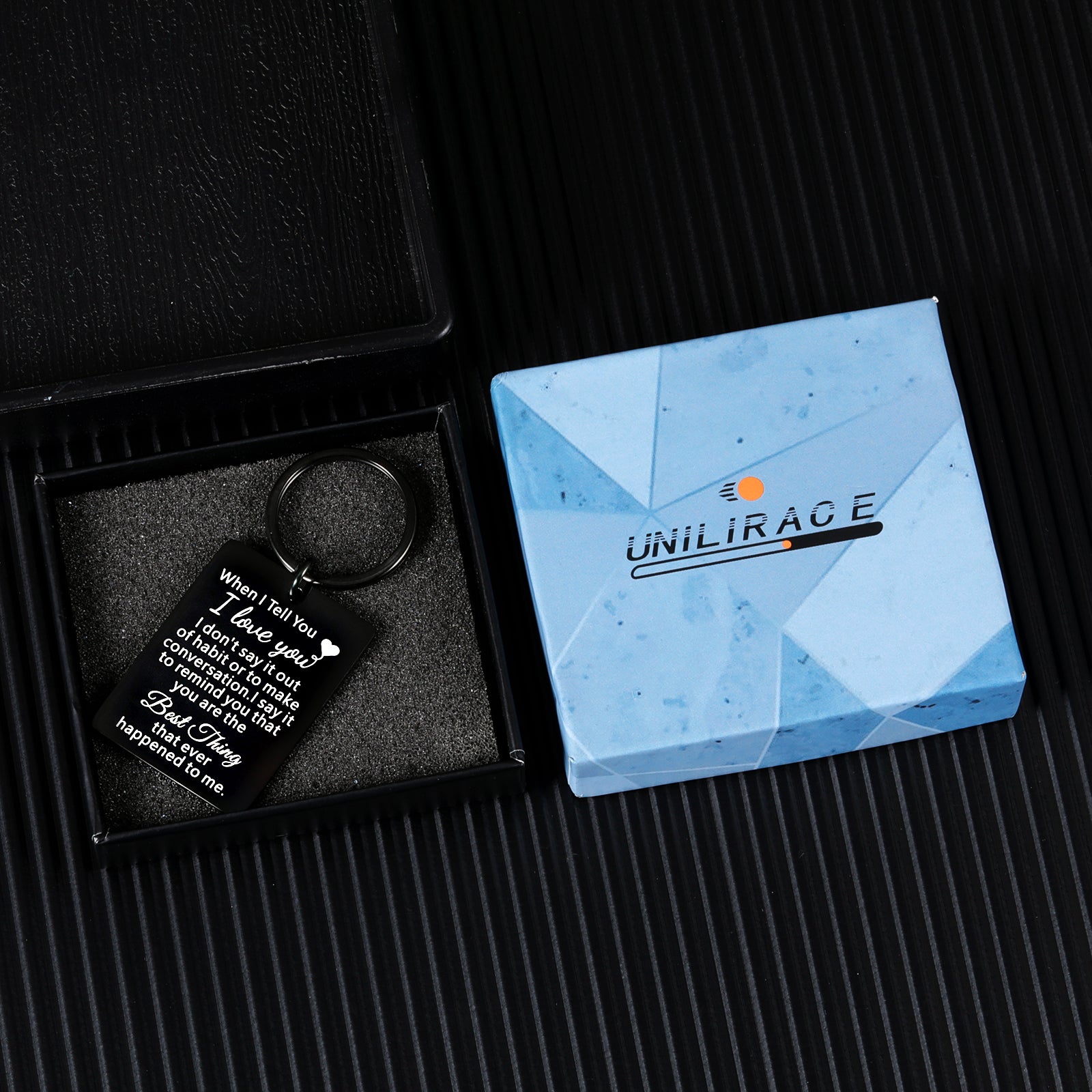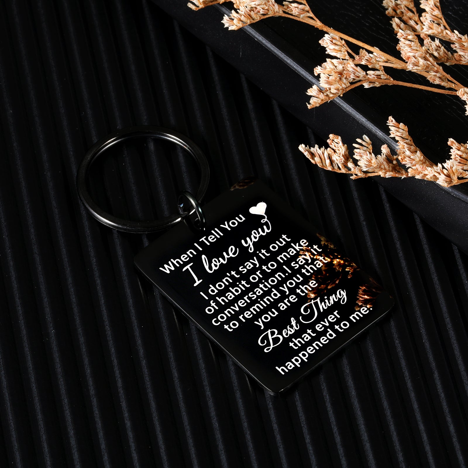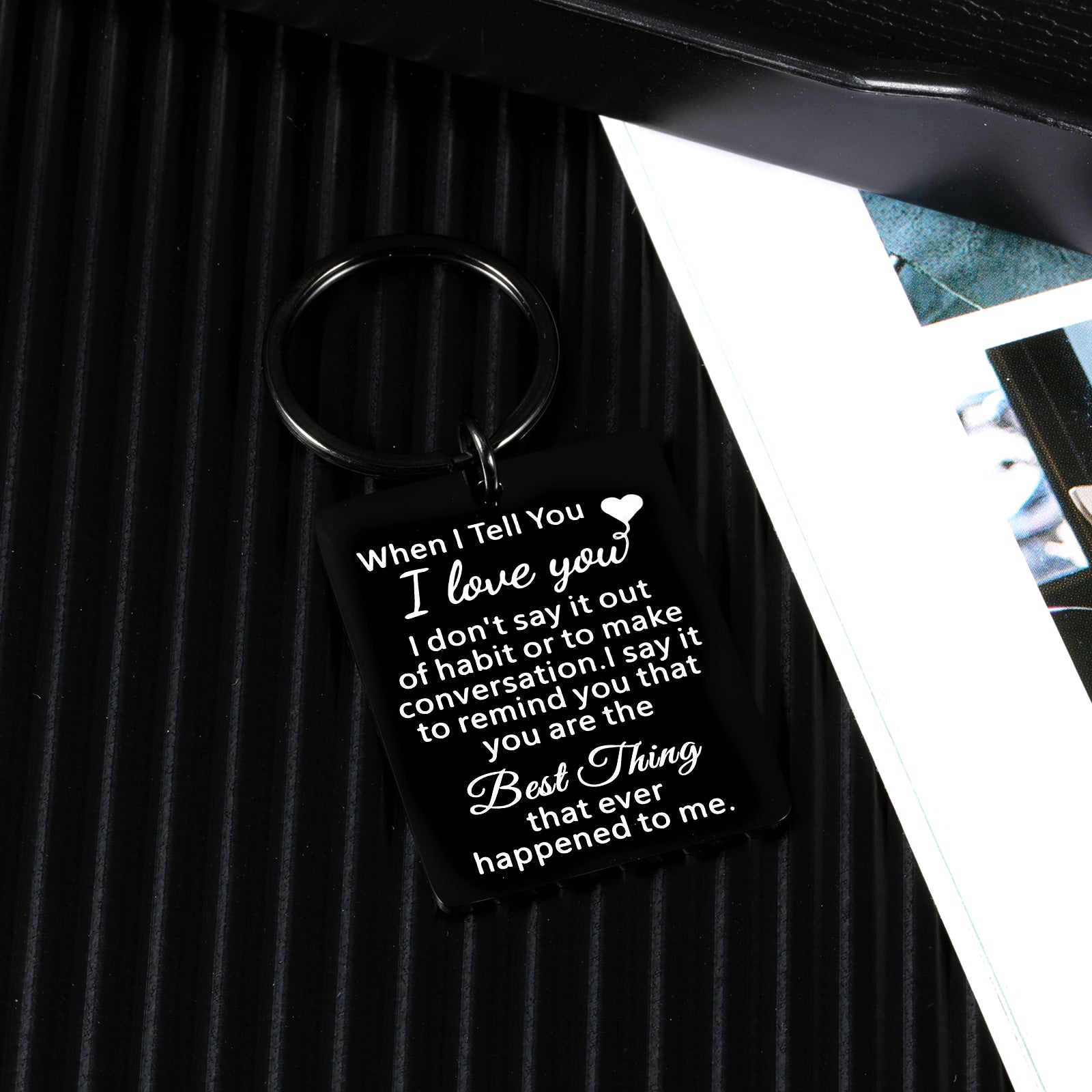 - 【I Love You Gifts for Him Her】Make a cut love you gifts for men women. The small jewelry with engrave sweet quotes is a wonderful gifts idea for him her. “When I Tell You I Love You. I don't say it out of habit or to make conversation. I say it to remind you that you are the best thing that ever happened to me.” This love you more keychain remind them that you are saying “I love you and you are the best thing that ever happened to me”.